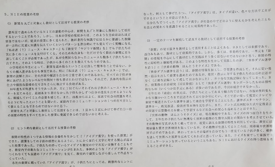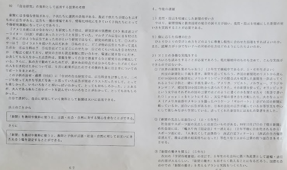 この冊子を通して私が教師になってからの新聞を活用した授業・学習について整理していました。